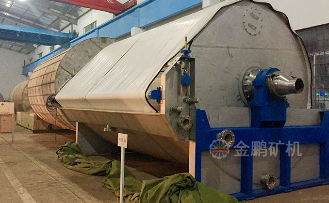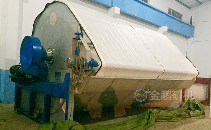 由于折帶式過濾機改變了卸料方式、加強了對濾布的清洗,便基本上克服了這些缺點。當濾餅經(jīng)過真空區(qū)以后,濾布就由一套輥子引出筒外進行卸料和清洗,清洗好的濾布再回到筒體重新工作。